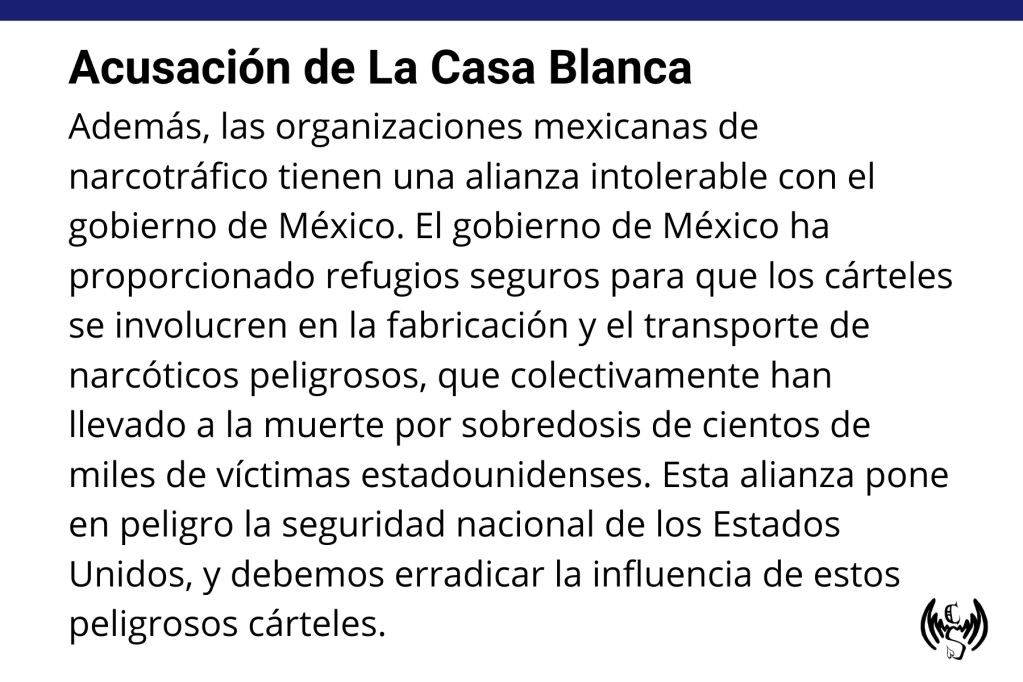 Claudia Sheinbaum tiene razón: fue irresponsable de la Casa Blanca emitir un comunicado oficial acusando al gobierno mexicano de estar relacionado con el narcotráfico. También tiene razón al señalar que Estados Unidos no ha hecho lo suficiente para frenar el comercio de drogas en su territorio.