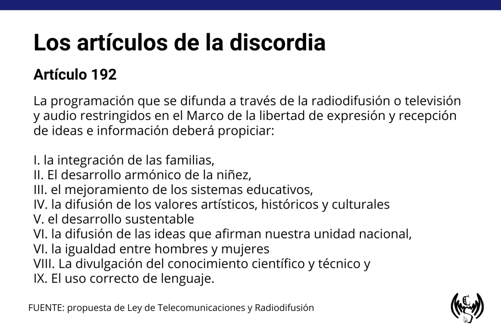Además de que su presentación a la Cámara de Senadores fue la noche del 23 de abril de 2025 y su discusión en comisiones se realizó durante la mañana del 24 de abril, lo que impidió su análisis y socialización, el contenido representa un exceso de atribuciones para un nuevo organismo que podrá definir las reglas de operación de los medios de comunicación, sancionar irregularidades y castigar el incumplimiento de la ley, que será aprobada en el Senado. Pero, por si fuera poco, también podría suspender concesiones e incluso ordenar la eliminación de sitios de Internet o de cuentas en redes sociales.